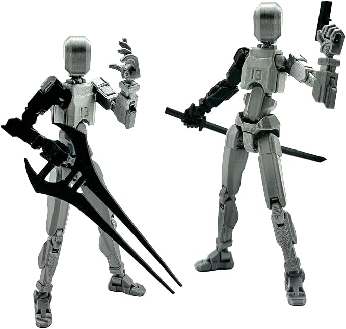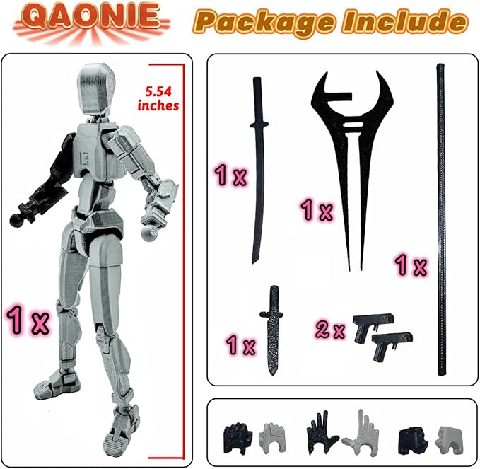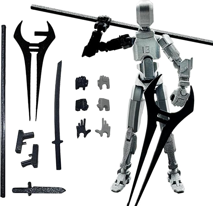 3D Printed 5.54-inch Multi-Jointed Action Figures Dummy13, Full Body Mechanical Movable Toy, Multiple Accessories, Hand Painted Figure, Desk Decoration, Creative Gifts (Z-Black Hand)