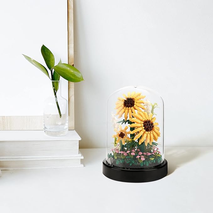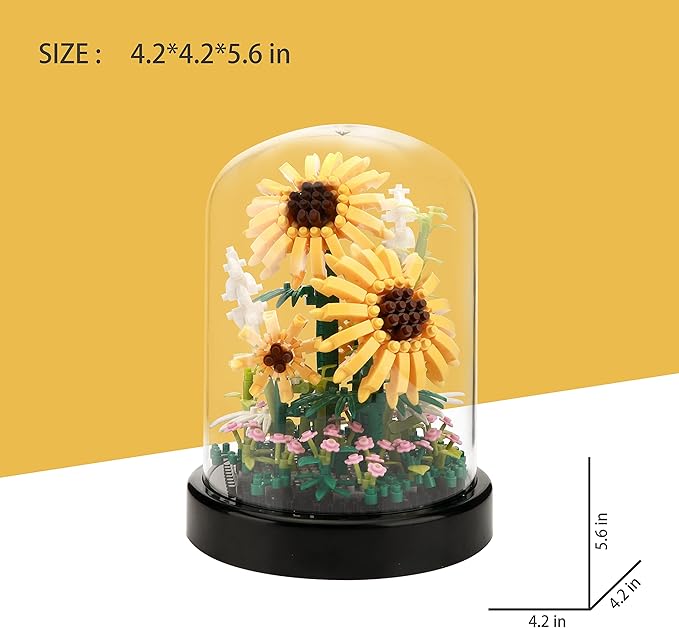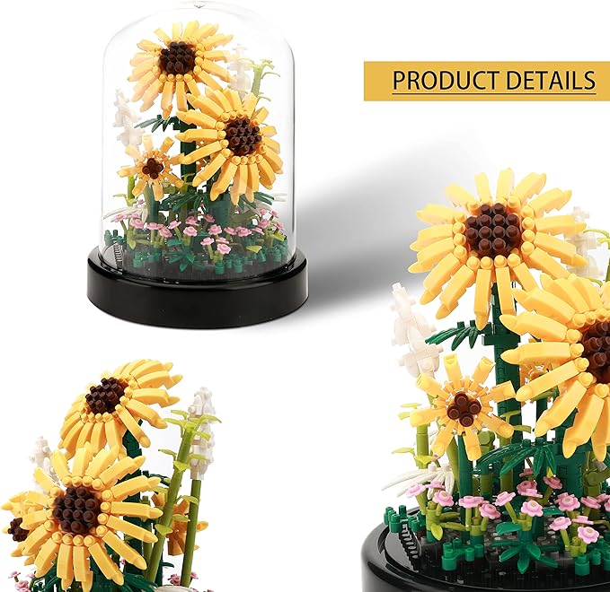 Sunflower DIY Building Blocks Kit - 545 PCS Botanical Flower Bouquet Micro Bricks for Adults & Kids Ages 6+, Creative STEM Gift, Home & Office Decor with Dust Cover