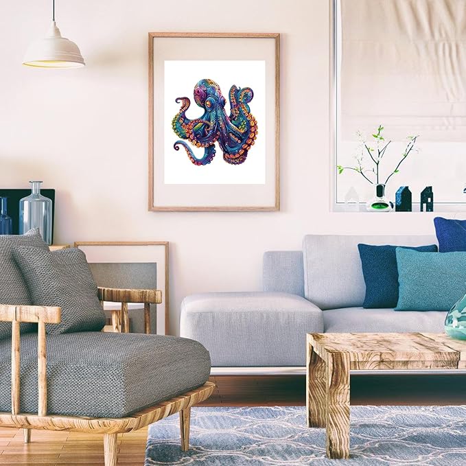 Wooden Puzzles for Adults, Octopus Ocean Jigsaw Puzzles 200 Pieces Unique Animal Adult Puzzles, Irregular Wood Puzzles Creative Gift for Adults and Kids Family Game (11.2x11.2 in)