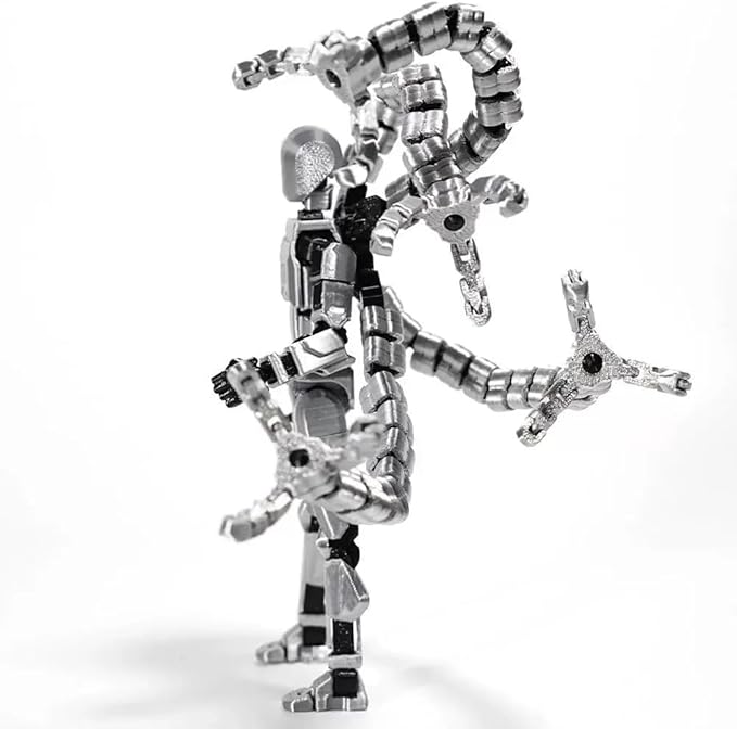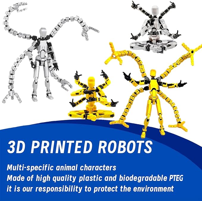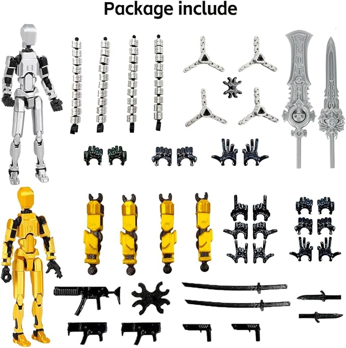 T13 3D Action Figure Set (Assembly Completed) 2 Pcs, 3D Printed Multi-Jointed, Titan 13 Action Figures, Multi-Articular Lucky Mobile Robot Nova,Desktop Decorations for Game Lovers Toys (Sliver Gold)