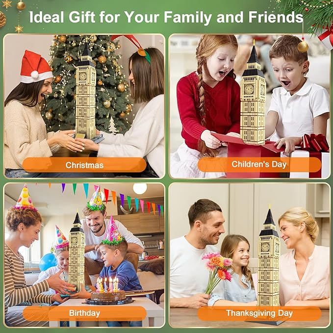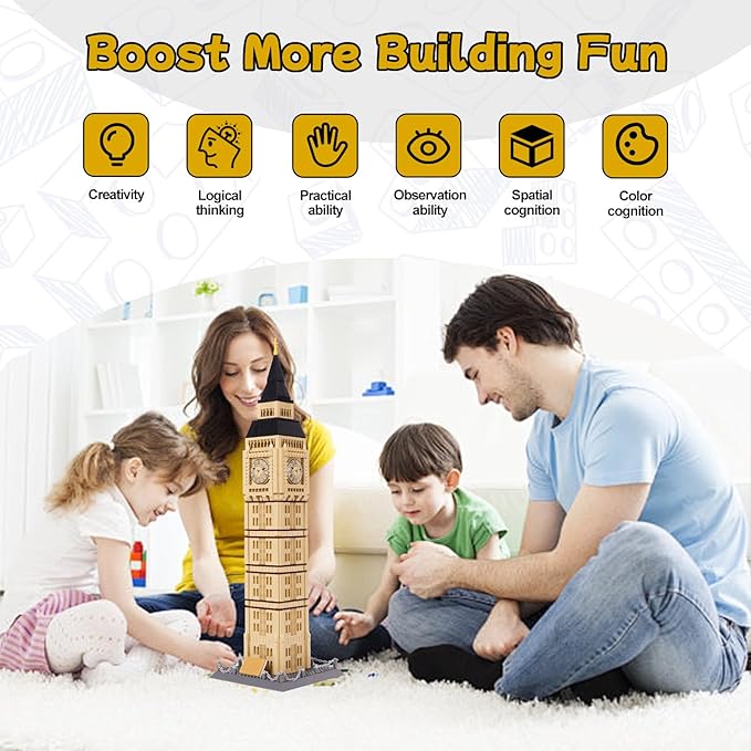 Toy Building Block Set, London Big Ben Elizabeth Tower Building Blocks Regular Size Brick World Famous Architecture Christmas Birthday Gift for Adults Children Kids Boys Girls 8+ 1666 PCS