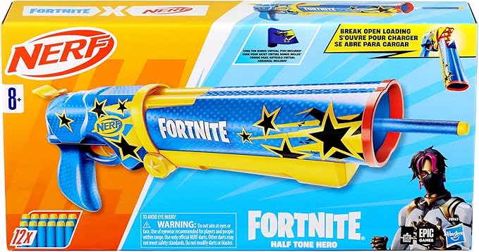 About This NERF HALF TONE HERO BLASTER: The Nerf Fortnite Half Tone Hero blaster is inspired by the equipment used... Read more