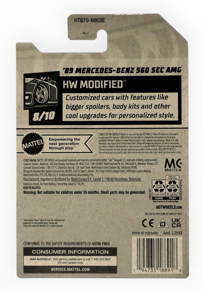 Matchbox Hot Wheels '89 Mercedes Benz 560 Sec AMG, HW Modified 8/10 [red] 82/250
