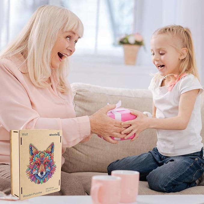 Wolf Wooden Puzzles 200 Pieces, Animal Jigsaw Puzzles for Adults, Unique Shape Animal Adult Puzzles, Irregular Best Gift for Adults Family Game (10.2x11.2 in)