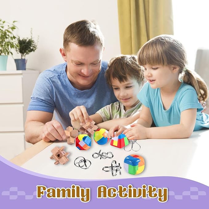 About This 18Pcs Brain Teaser Puzzles Set: This set includes wooden, plastic, and metal puzzle games designed to enhance your... Read more