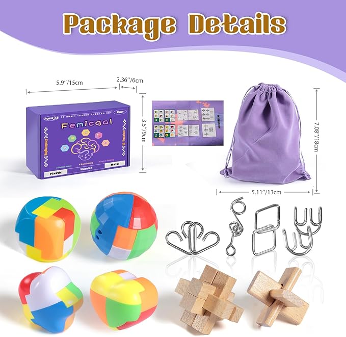 About This 10Pcs Brain Teaser Puzzles Set: This set includes wooden, plastic, and metal puzzle games designed to enhance your... Read more