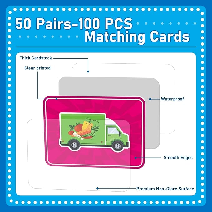 About This 100 PCS matching cards: A total of 100 cards in 50 pairs to get familiar with the images... Read more