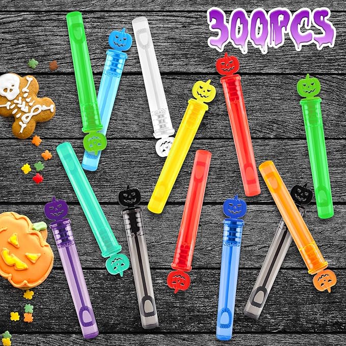 300PCS Halloween Party Favor, Halloween Bubble Wands for Kids, Halloween Trick or Treat Toys, Goodies Bag Fillers, Pinata Fillers, Mini Bubble Wands for Party Supplies