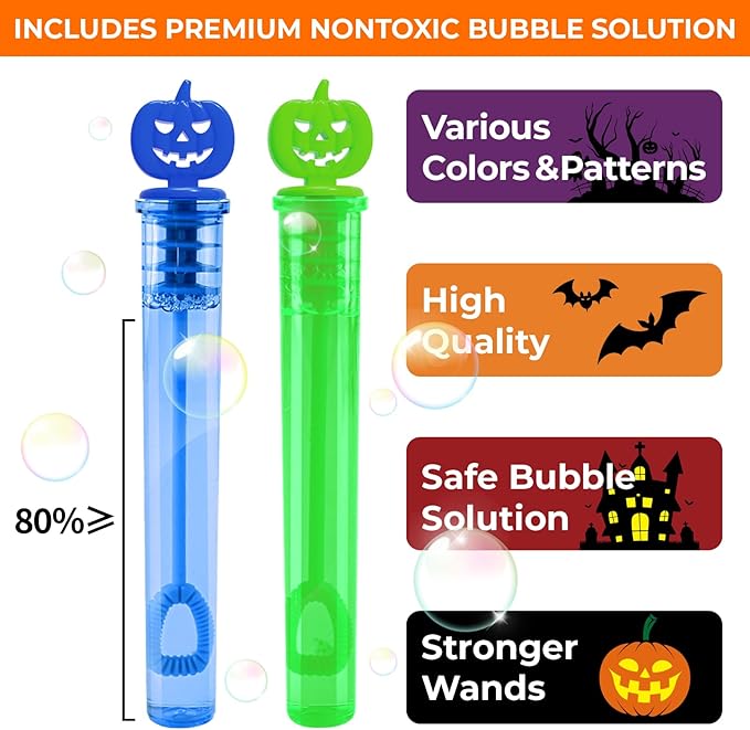 About This 【Halloween Party Favors for Kids】Our Halloween super value pack set include 200PCS bubble wands with Halloween pumpkin theme... Read more