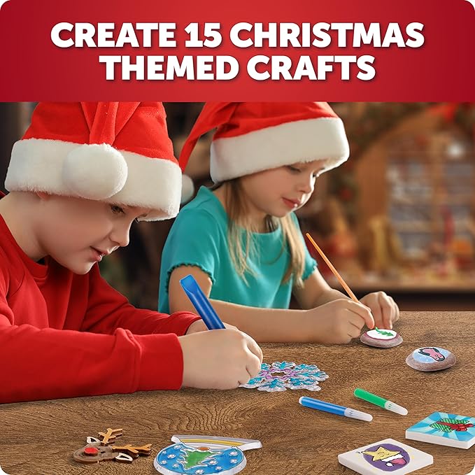 Santa's Christmas Craft Kit for Kids - 15 Magical Christmas Crafts for Kids, Make Suncatchers, Paint Holiday Rocks, Make Magnets & More for Christmas Gifts, Craft Kits for Ages 5 6 7 8 9 10 11 & 12