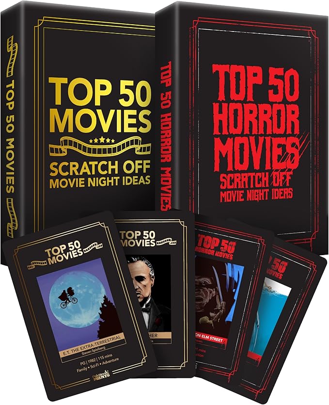 Fan Bundle: Top 50 & 50 Horror Movie Scratch Off Decks - Complete Challenge, Enhance Movie Nights!