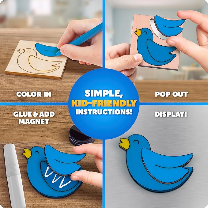Blue Marble Wooden Magnet Craft Kit - Create & Paint 15 Nature-Themed Magnets with 8 Watercolor Pens, Magnet Art Kit, DIY Magnets for Kids, Magnet Arts and Crafts, Magnet Painting Kit for Kids