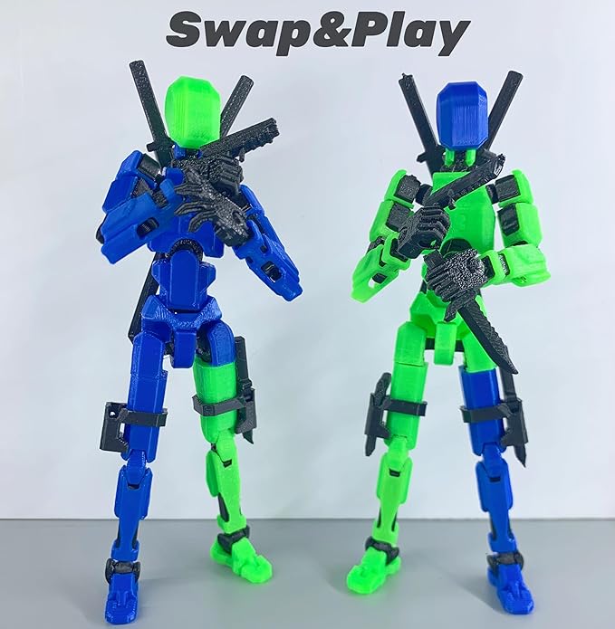 Pre-Assembly 3D Printed 5.54'' Stick Robo 13 Action Figure, Multi-Jointed Tian13, Articulated T13 Desktop Decoration,12 in 1 d13 Accessories Best Birthday Festival Gift (Blue red)