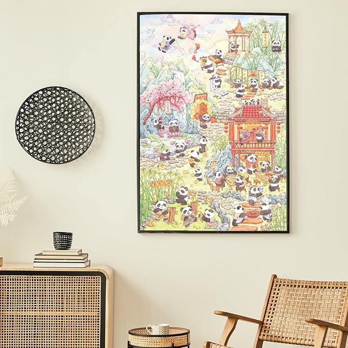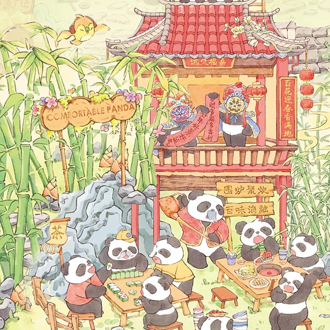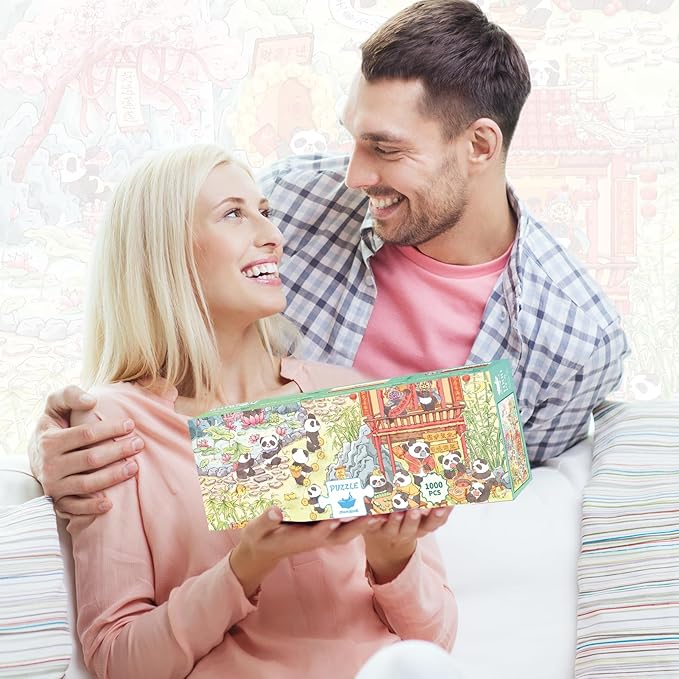 MOMIBOOK Puzzles for Adults 1000 Pieces Jigsaw Puzzles of Comfortable Panda, Flocking Painting Image Chinese Difficult Challenging Hard Impossible Puzzle Unique Funny Party Christmas Birthday Gifts