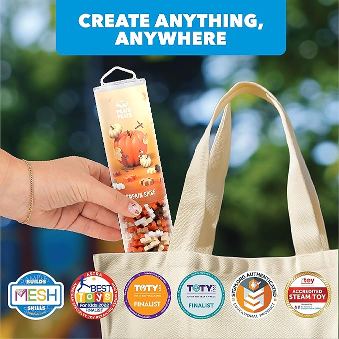 PLUS PLUS 240 Piece Interlocking Building Blocks for Kids, Open Ended Connecting Toys, STEM Bin Classroom Mini Manipulatives - Pumpkin Spice Mix Play Tube