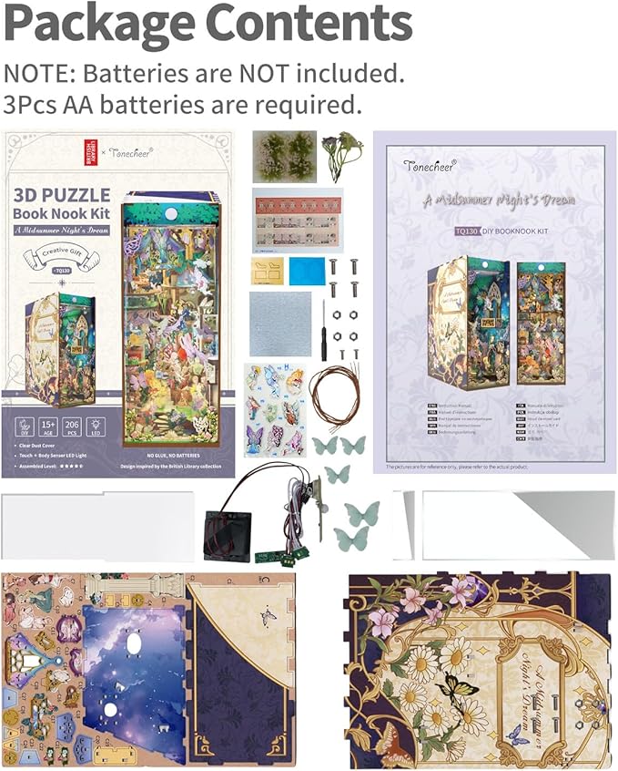 Tonecheer x British Library DIY Book Nook Kit,Shakespeare 3D Wooden Puzzle for Adults,Miniature House Booknook Bookshelf Insert Decor with LED Lights Unique Gifts (A Midsummer Night's Dream)