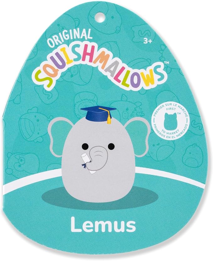 Squishmallows Original 12in Lemus The Grey Elephant with Graduation Cap – Official Jazwares Plush (Medium-Sized)