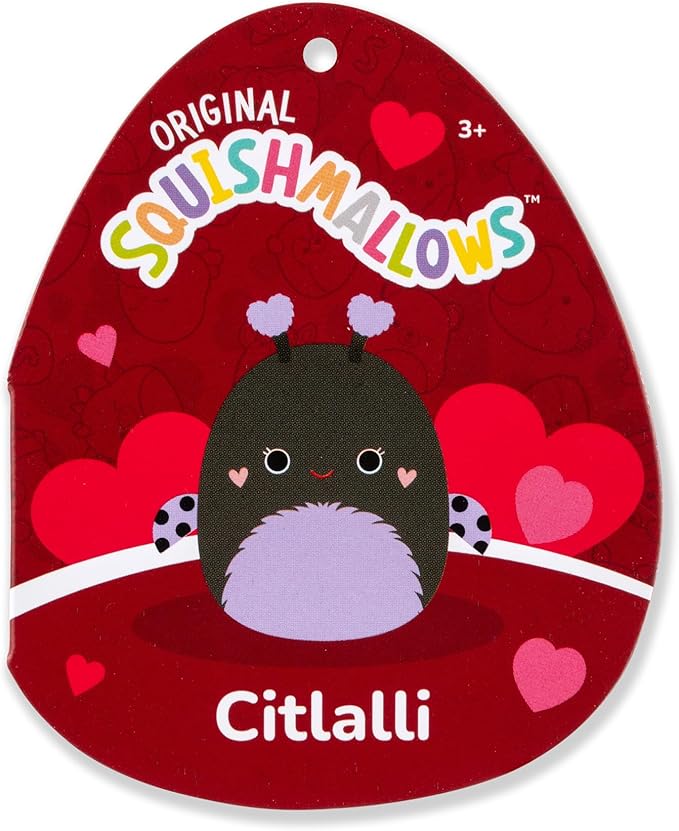 Squishmallows Original 8in Citlalli The Black and Purple Ladybug with Heart Antennae – Official Jazwares Valentine Plush (Little)