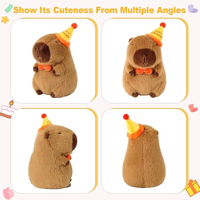 Ditucu Cute Capybara Plush with Happy Birthday Hat Bow Soft Capibara Stuffed Animal Plushies Toys for Birthday Gifts Party Decoration for Kids Brown 17 inch