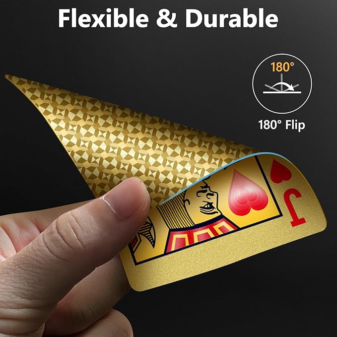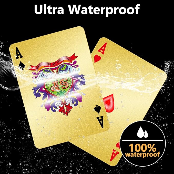 BIERDORF Waterproof Plastic Playing Cards - Durable Cool Deck of Cards - Standard Index Professional Premium Poker Cards - Vintage Casino Themed Card Games for Families or Adults - Gold Diamond Style