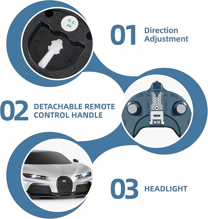 MIEBELY Remote Control Car - 1/24 Scale Fast Rc Race Car, Bugatti Chiron 3.7V 500 mAh Toys with Headlight, Racing Hobby Model Birthday Ideal Gifts for Adults Kids Boys Age 6 7 8 9 10 Year Old