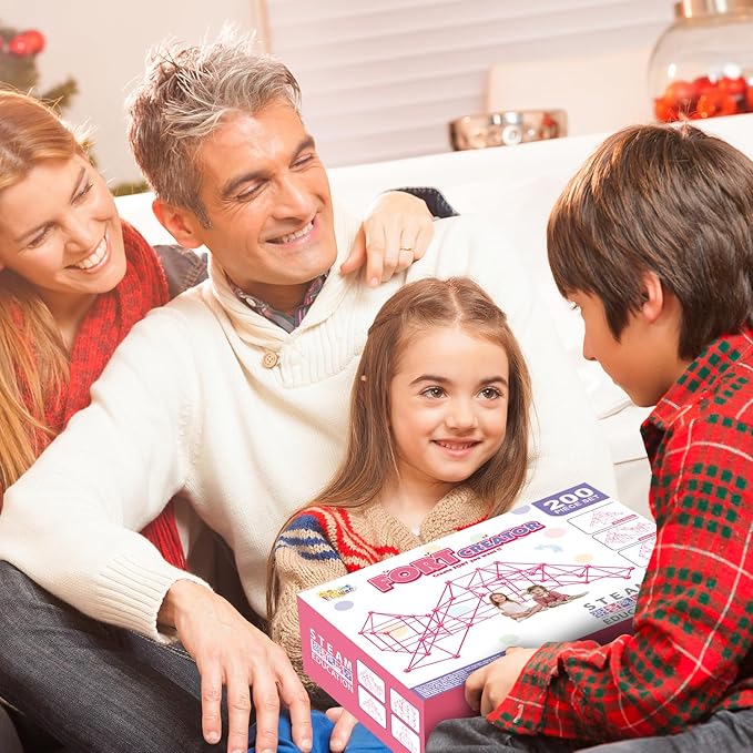 SpringFlower Fort Building Kit for Kids,STEM Construction Toys, Educational Gift for 4 5 6 7 8 9 10 11 12 Years Old Boys and Girls,Ultimate Creative Set for Indoor & Outdoors Activity,200 Pcs,Pink