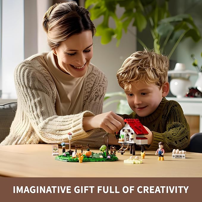 FUNWHOLE Farm Hen-House Lighting Building-Bricks Set - Farm Life Chicken Henhouse and Animal Collection LED Light Construction Building Model Set 323 Pcs for Adults and Teen
