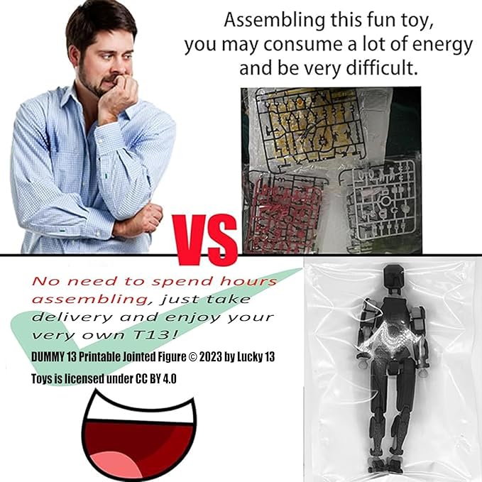T13 Action Figure Set, 3D Printed Multi-Jointed Movable Robot Dummy Set Lucky 13 Action Figure Articulated, for Collectors Desktop Decorations (Darkness)