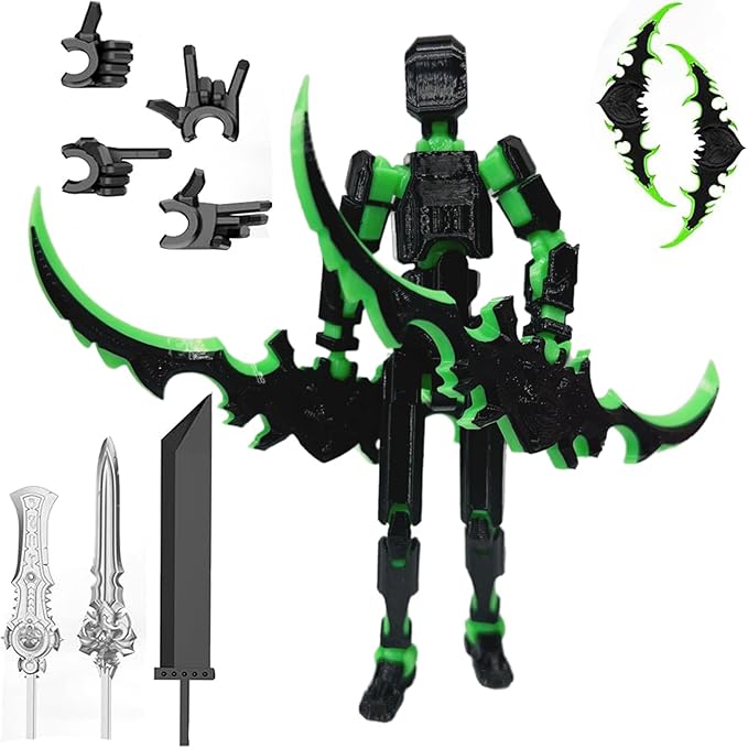 T13 Action Figure Set, 3D Printed Multi-Jointed Movable Robot Dummy Set Lucky 13 Action Figure Articulated, for Collectors Desktop Decorations (Black Green)