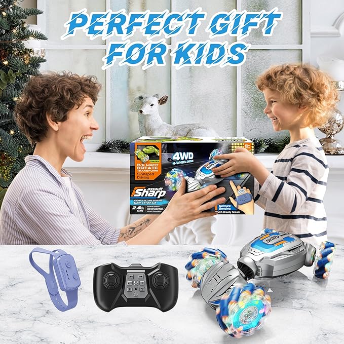 Gesture Sensing Stunt Remote Control Car - 2.4GHz 360° Rotating 4WD Transform RC Car, Birthday Gift for Boys 6 7 8+ Year Old