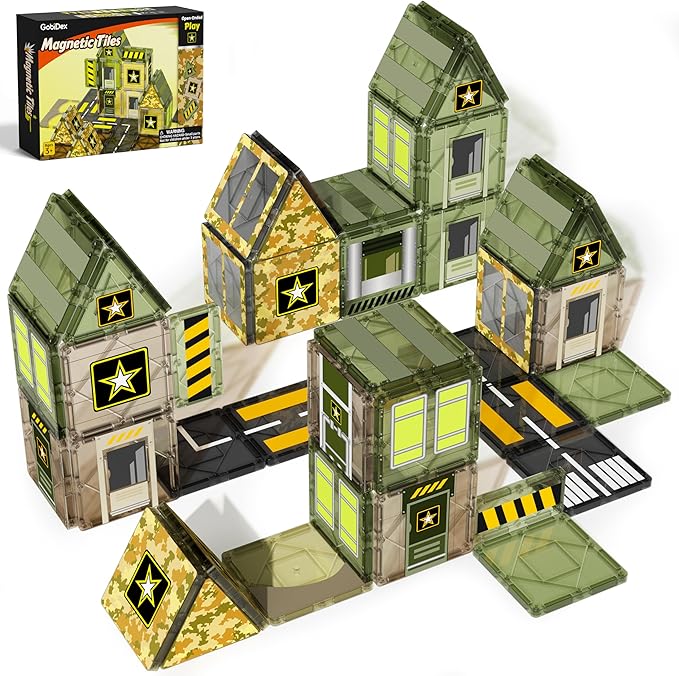 GobiDex Army Magnetic Tiles Road Set Building Toys for Boys 3+ Year Old, STEM Military Magnetic Blocks for Toddlers Construction Toys, Sensory Magnets for Kids Birthday Gifts Boys & Girls 48PCS