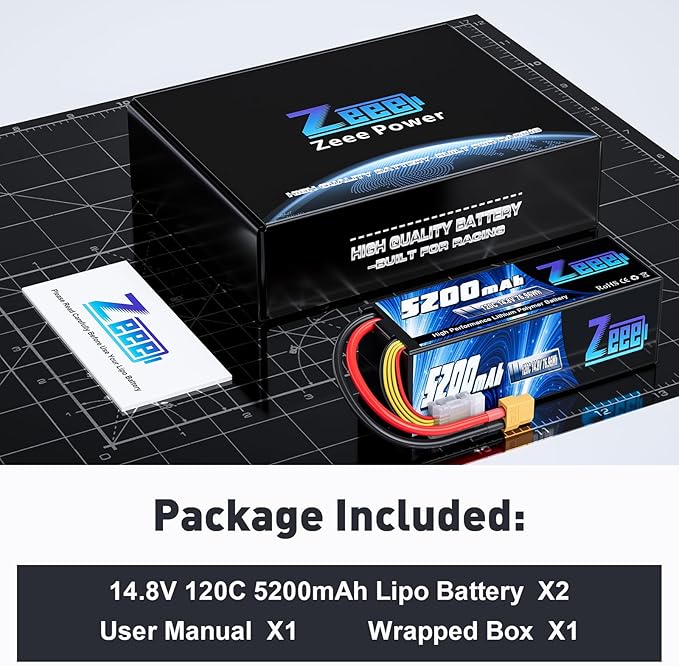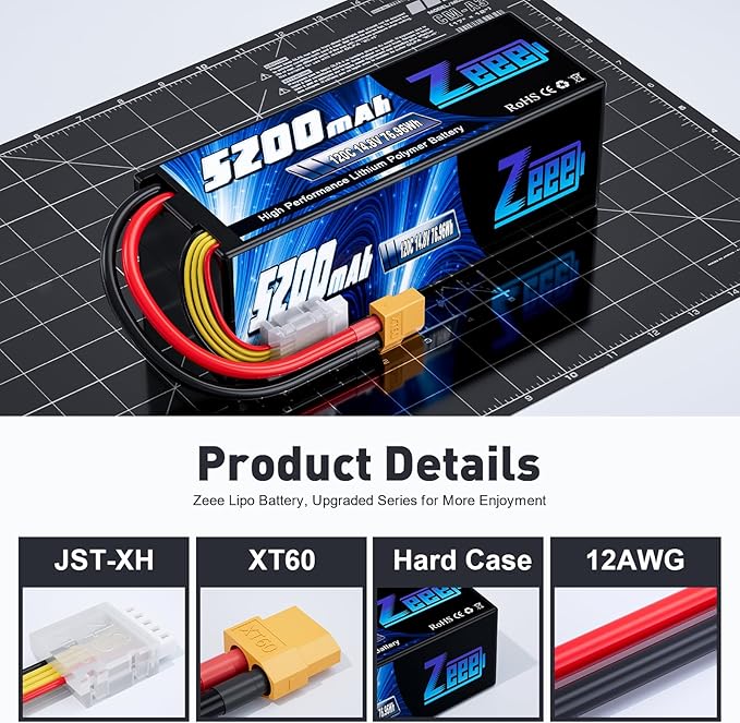 About This 【Zeee 4S Lipo Battery Specification】- Battery Voltage: 14.8V; Configuration: 4S1P; Capacity: 5200mAh; Discharge: 120C; Plug: XT60 Connector. 【14.8V... Read more