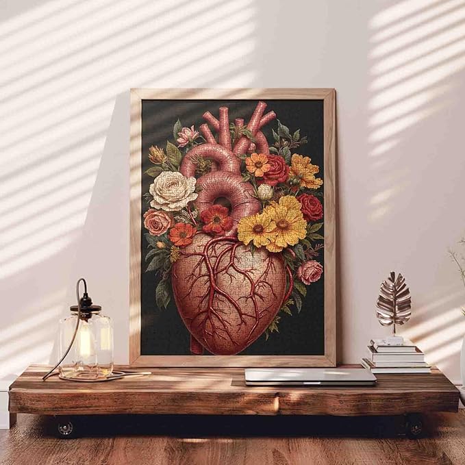 Human Organ Jigsaw Puzzles 1000 Pieces for Adults, Families (Men Heart,Flowers,Tropical Plants) Pieces Fit Together Perfectly 19.7''x27.6''inch Body Anatomy Frameable Magic Puzzle Art(Colorful)