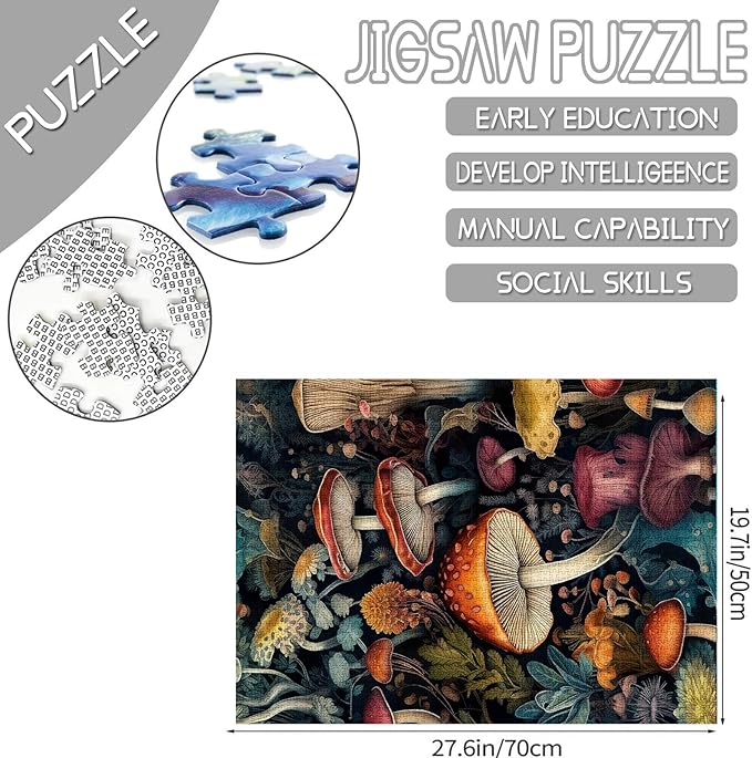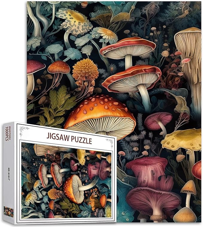 Fantasy Mushroom Puzzles 1000 Pieces for Adults, Families (Mushroom,Tropical Plants,Vegetable,Green Leaves) Pieces Fit Together Perfectly 19.7''x27.6''inch Forest Jungle Magic Puzzle Art(Colorful)