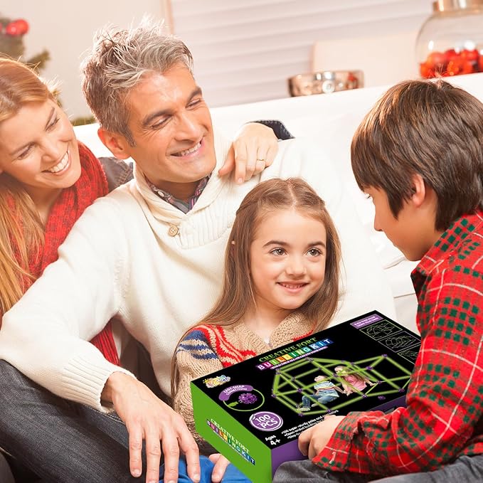 SpringFlower 100 PCS Glow in The Dark Fort Building Kit for Kids,Educational Gift for 3 4 5 6 7 8 9 10 11 12 Years Old Boys and Girls,STEM Construction Toys