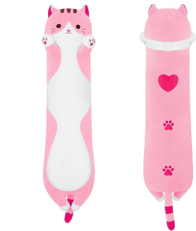 Long Plush Toy Cat Pillow Cute Plush Cat Toy Doll Stuffed Animal Cat Hugging Pillow for Sleeping Gift for Kids and Girls(Pink,50cm/19.6in)