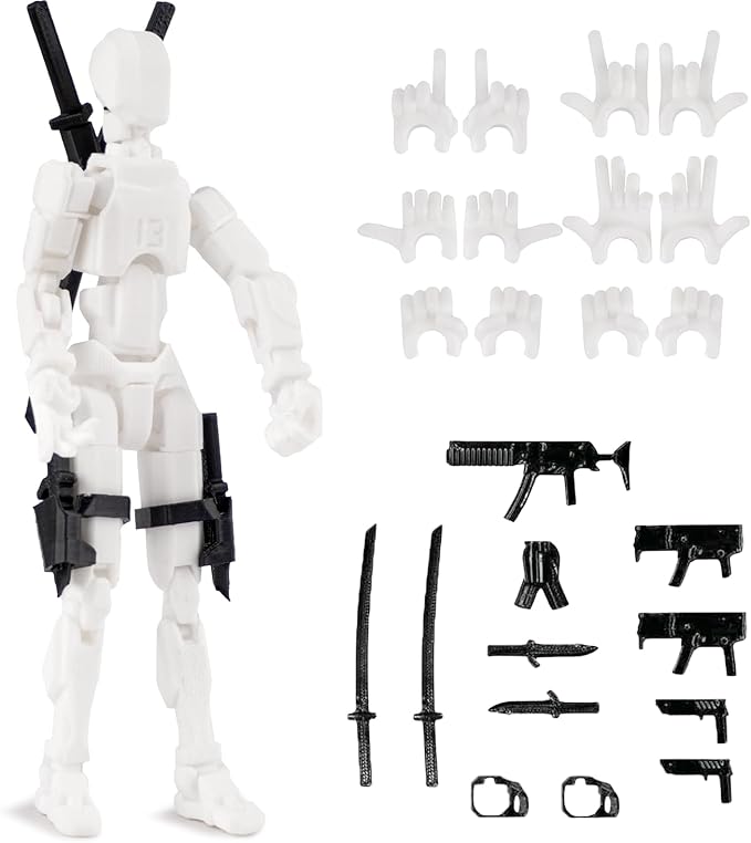 T13 Action Figure, Pre-Assembly 3D Printed 5.54'' Multi-Jointed Titan13, Articulated Dummy 13 Desktop Decoration,12 in 1 Accessories, Best Birthday Festival Gift (White+White)