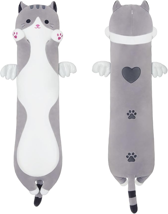 Long Plush Toy Cat Pillow Cute Plush Cat Toy Doll Stuffed Animal Cat Hugging Pillow for Sleeping Gift for Kids and Girls(Gray,70cm/27.5in)