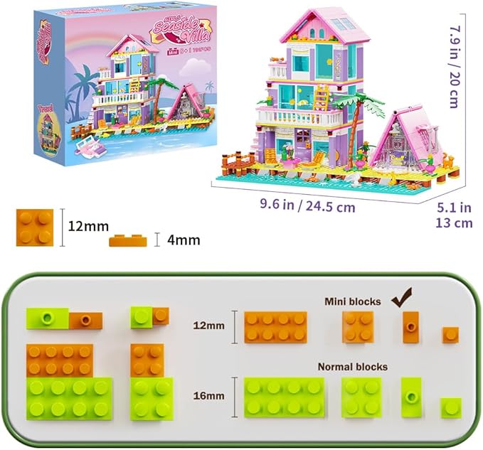 Girl Beach House Building Blocks Toys for Girls Age 8+, Seaside Villa Friends Building Set with Light, 791pcs Mini Bricks