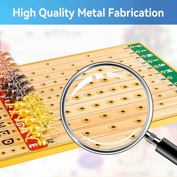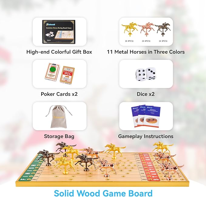 Luxurious Horse Race Board Game Horse Racing Board Game Colorful Metal Grommets with 11 Durable Metal Horses 2 Dice and 2 Boxes of Cards (Gold Grommets)