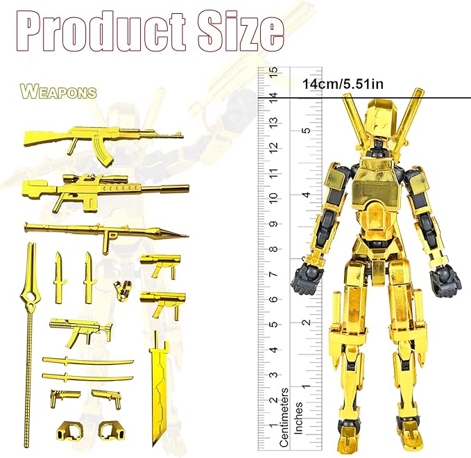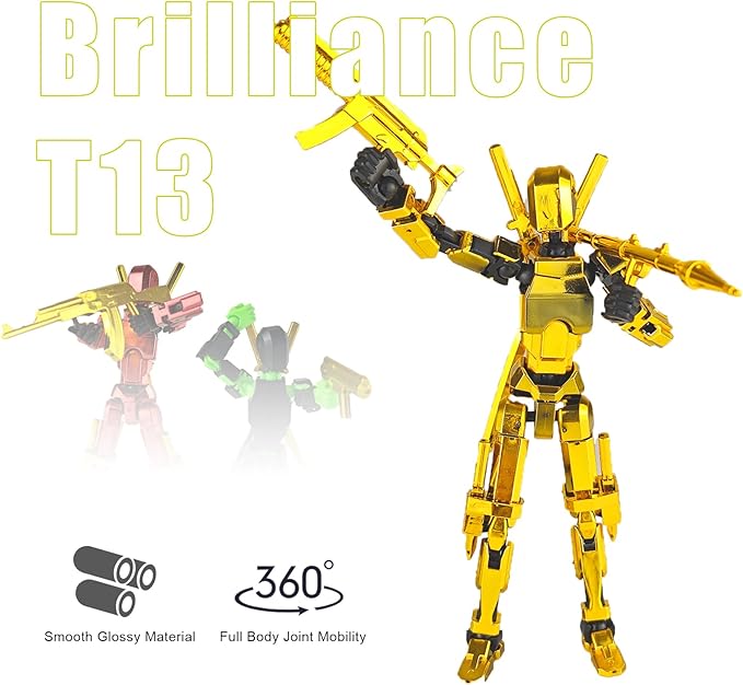 Assembly Completed T13 3D Printed Action Figures,Dummy 13 Robot 13 Movable N13 Action Figure, Lucky 13 Gift for Collectors Desktop Decorations for Game Lovers Toy(Metallic Color)