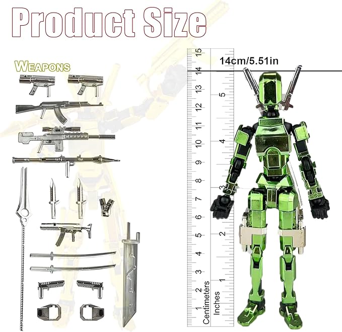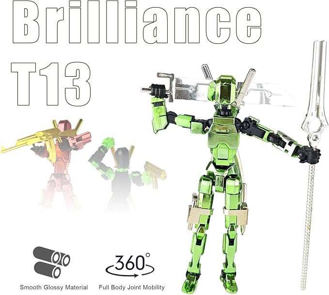 Assembly Completed T13 3D Printed Action Figures,Dummy 13 Robot 13 Movable N13 Action Figure, Lucky 13 Gift for Collectors Desktop Decorations for Game Lovers Toy(Metallic Green)