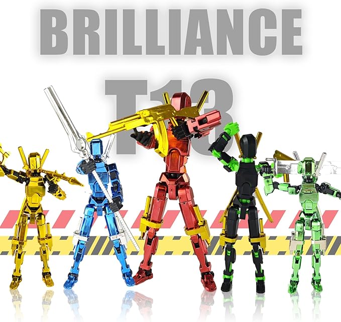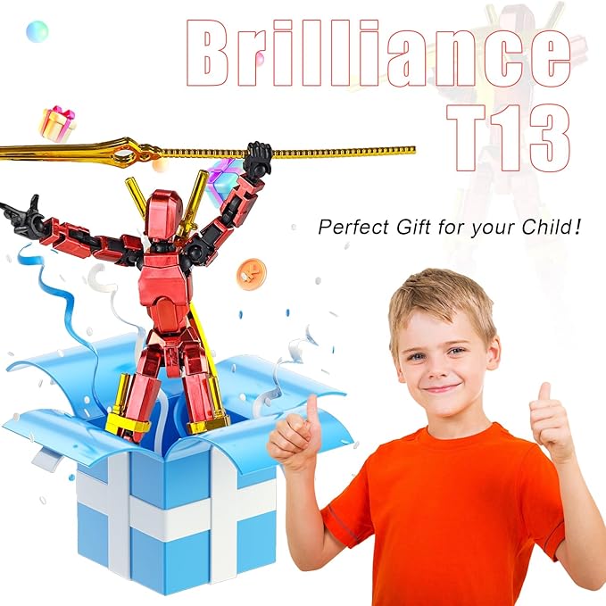 Assembly Completed T13 3D Printed Action Figures,Dummy 13 Robot 13 Movable N13 Action Figure, Lucky 13 Gift for Collectors Desktop Decorations for Game Lovers Toy (Red Blue + Metallic Weapon)