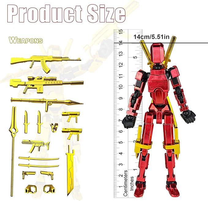 Assembly Completed T13 3D Printed Action Figures,Dummy 13 Robot 13 Movable N13 Action Figure, Lucky 13 Gift for Collectors Desktop Decorations for Game Lovers Toy (Metallic Red)