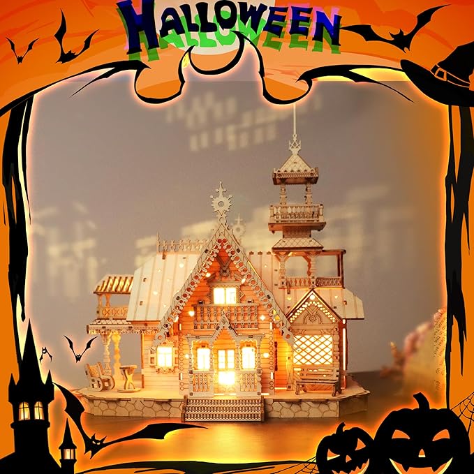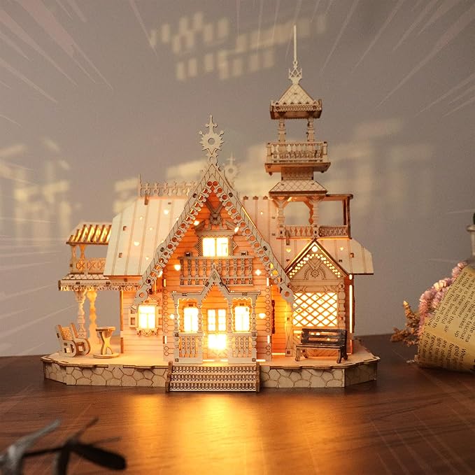 Vintage Villa 3D Wooden Puzzle,Building Kits for Adults and Teens,Educational Brain Teaser Assembly Model with LED Lights,Skill Building and Creative Fun