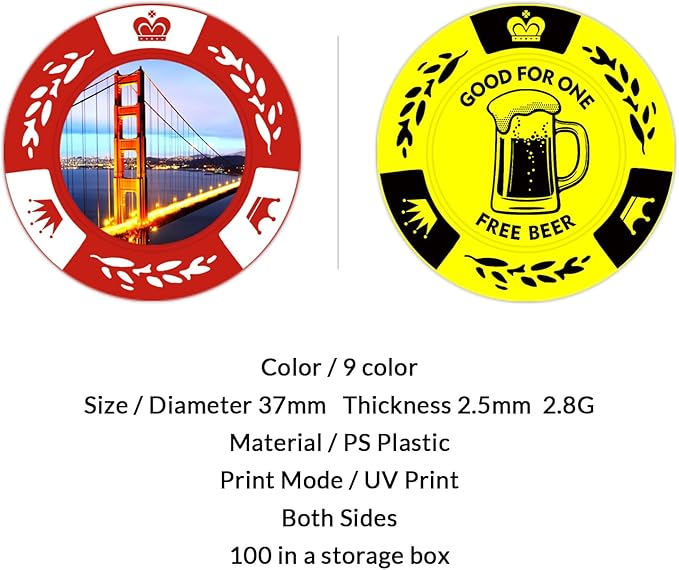 100 Personalized Poker Chips, Print with Your Text and Logo, Suitable for Corporate Event, Poker Night, Card Club, Board Game, Party