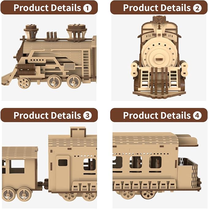 3D Wooden Puzzles for Adults, 242 PCS 3D Puzzles for Adults- Brain Teaser Wooden Puzzles for Father/Son, Gifts for Fathe/Son, Decompression 3D Puzzle Wood Models Kits (2.Locomotive Train)