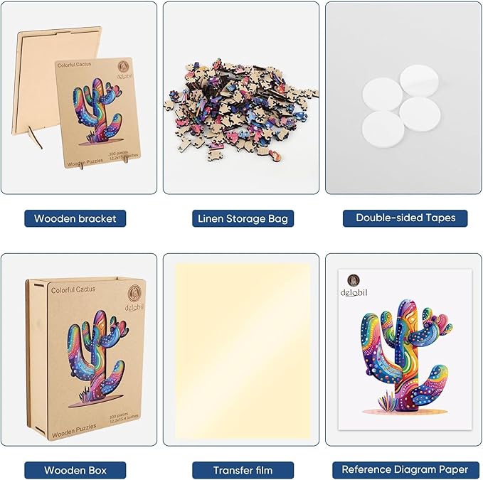 delobil Colorful Cactus Wooden Puzzles, 300 Pieces Jigsaw Puzzles 12.2'' x15.4'', Unique Design Liberty Wooden Puzzles for Adults and Kids, Family Game Gift Royal Size