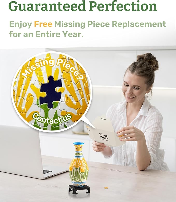 About This Unique Flower Vase - Made by 160-piece 3d curved puzzle pieces with a detachable water cup and stand.... Read more