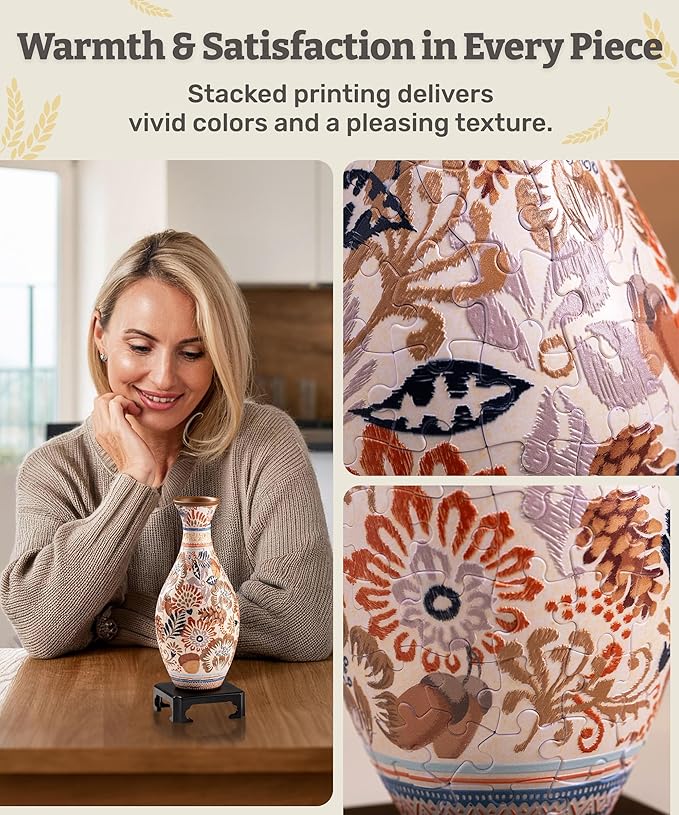 PieceRelax Unique Flower Vase - 3D Puzzle Vase for Adults to Flower Arrangement and Home Decoration Made by 160 Curved Plastic Puzzle Pieces - Autumn Abundance [S1042]